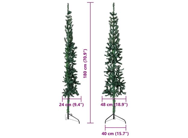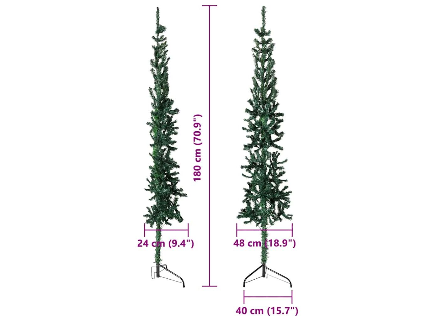 Jumătate brad de Crăciun subțire cu suport, verde, 180 cm