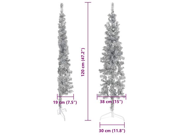Jumătate brad de Crăciun subțire cu suport, argintiu, 120 cm