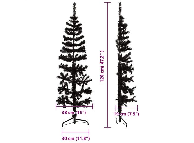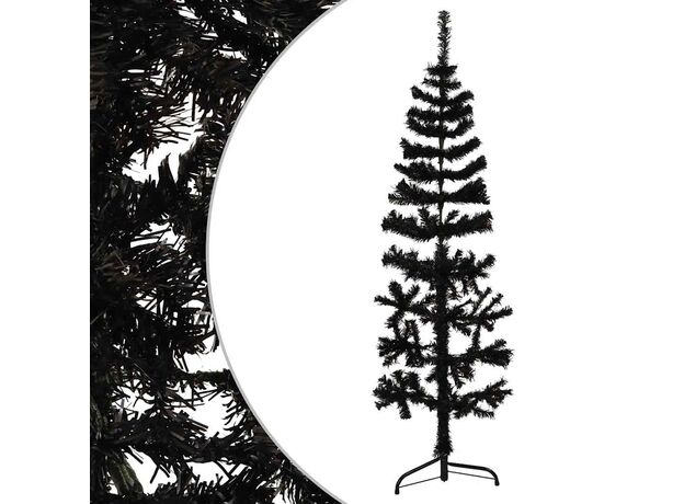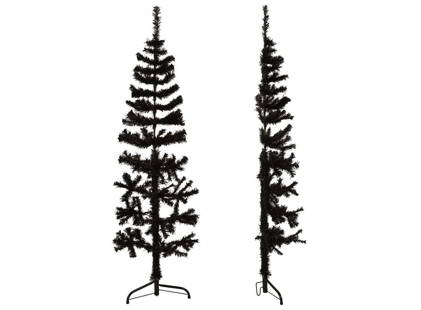 Jumătate brad de Crăciun subțire cu suport, negru, 120 cm