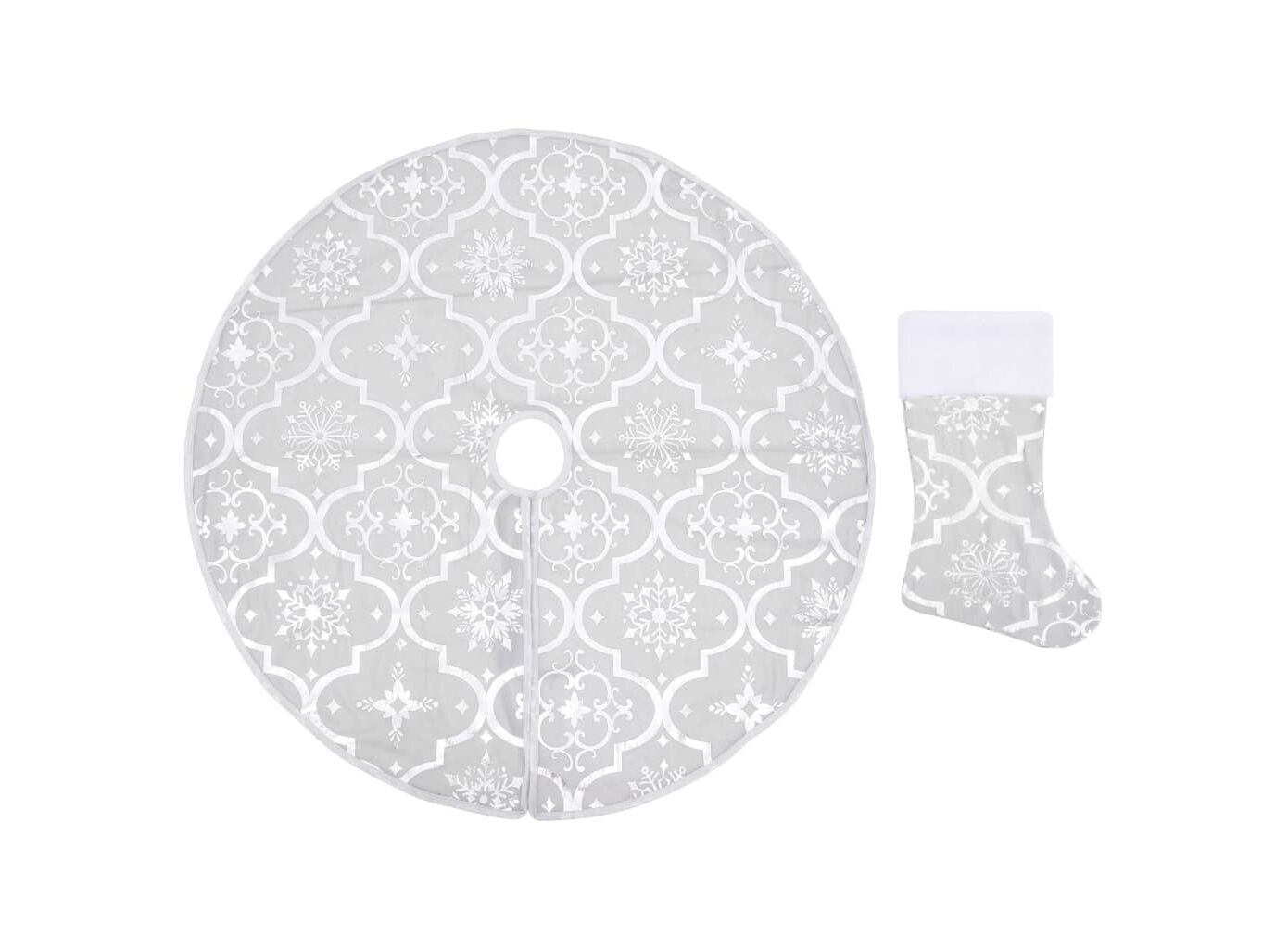 Cantitatea minima pentru "Covor fustă de brad Crăciun cu șosetă, alb, 150 cm, țesătură" este 1.