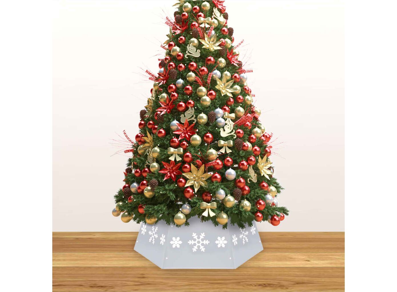Acest guler de brad, cu model imprimat de zăpadă, este ideal pentru a îmbunătăți aspectul bradului dvs. de Crăciun și pentru a crea o atmosferă perfectă de sărbătoare. Fusta de pom este realizată din metal, fiind robustă și durabilă, astfel încât să o puteți depozita după utilizare, pentru următoarea sărbătoare.