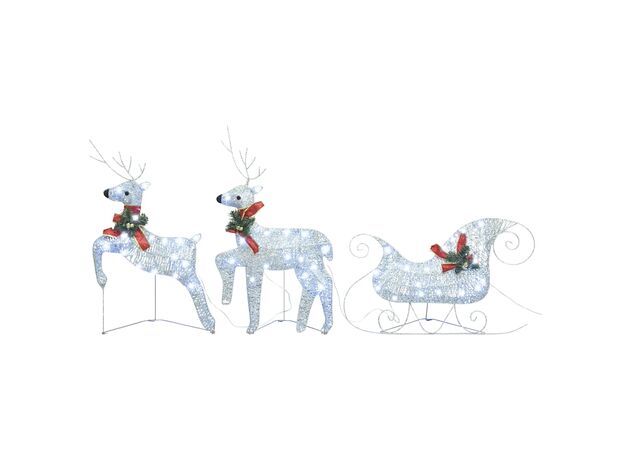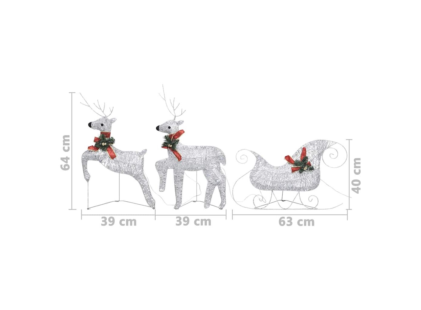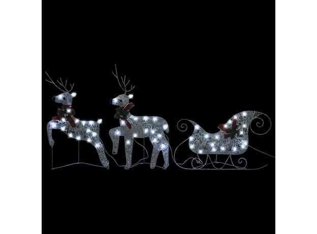 Decor de Crăciun cu reni și sanie, 60 LED-uri argintiu exterior