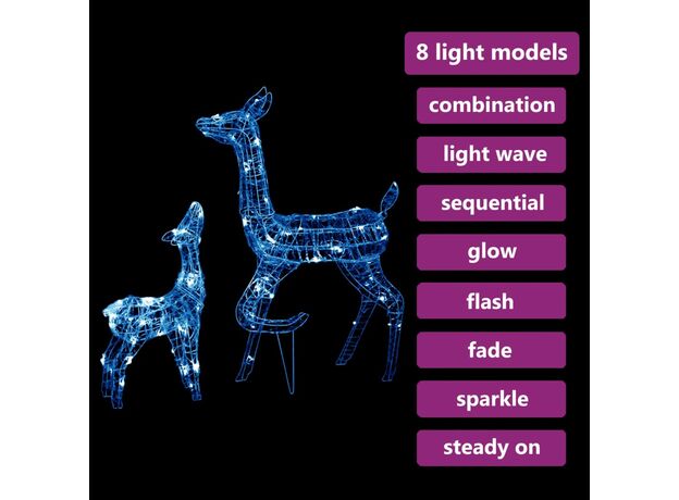 Iluminați-vă casa și sărbătoriți Crăciunul cu această familie de reni. Această decorație de familie de reni asociată cu iluminarea albă rece, scoate în evidență adevărata frumusețe în sărbătoarea de Crăciun!