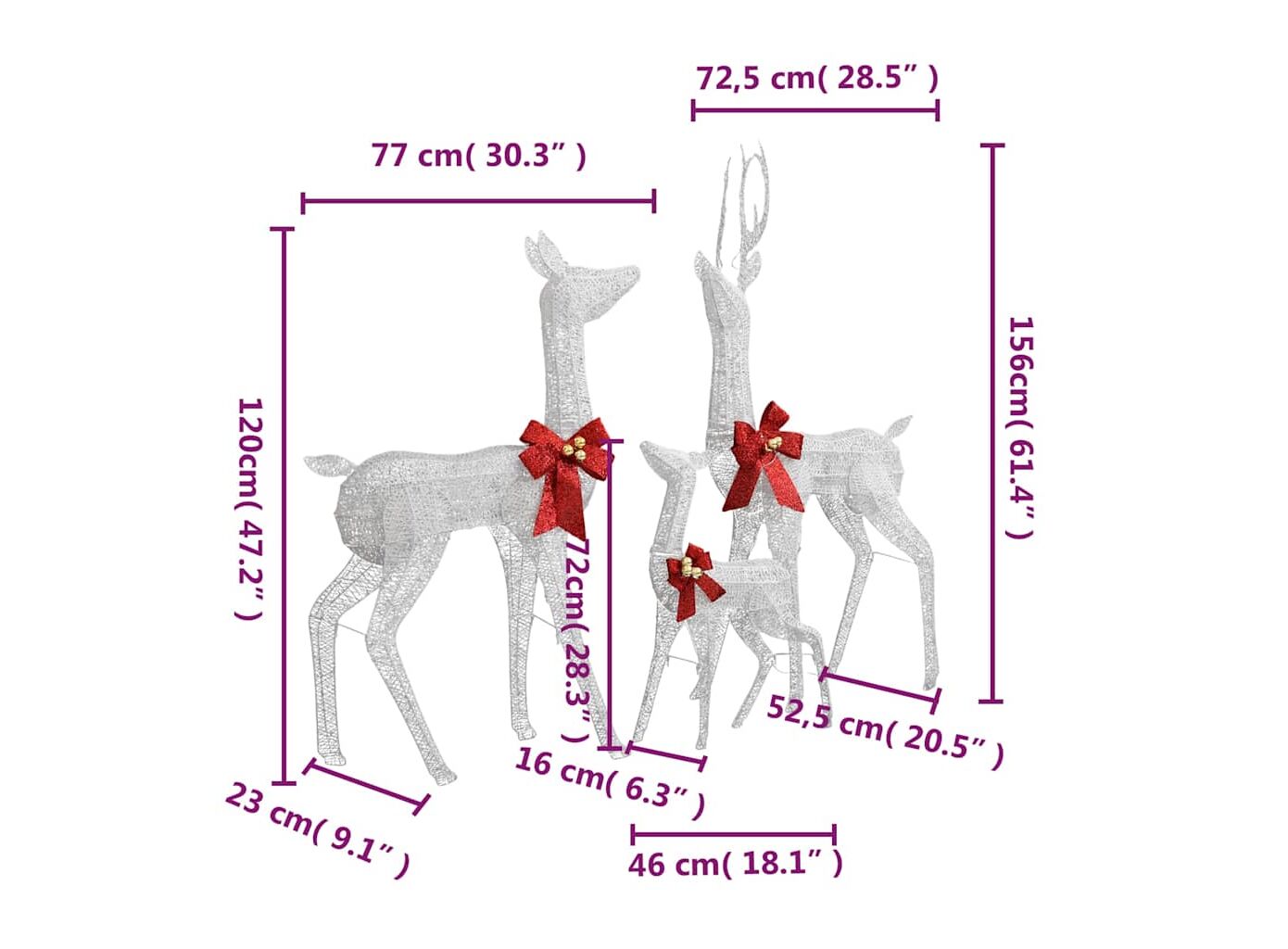 Decorațiune de Crăciun familie de reni 201 LED-uri alb/argintiu
