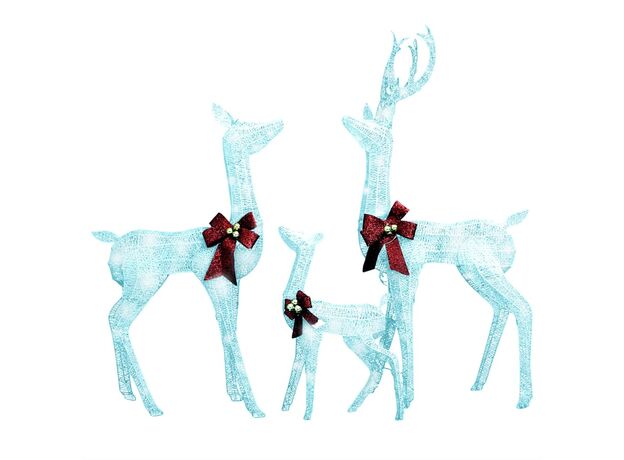 Iluminați-vă casa și sărbătoriți Crăciunul cu această familie de reni. Această decorațiune cu familie de reni, asociată cu iluminarea albastră, scoate în evidență adevărata frumusețe a sărbătorilor de Crăciun!