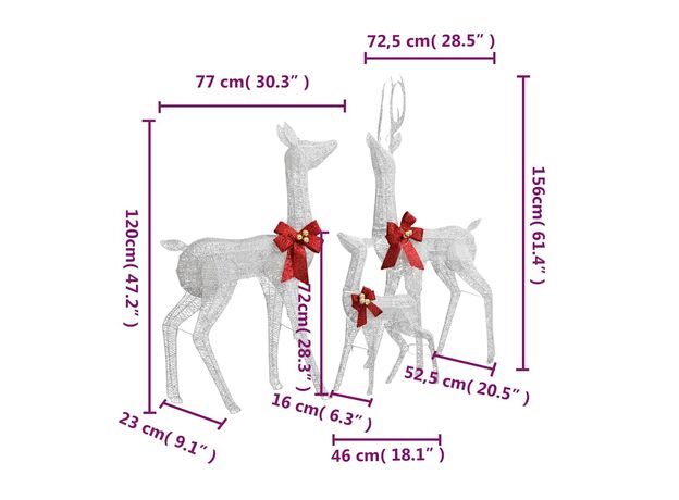 Cantitatea minima pentru "Decorațiune de Crăciun familie de reni 201 LED-uri alb/argintiu" este 1.