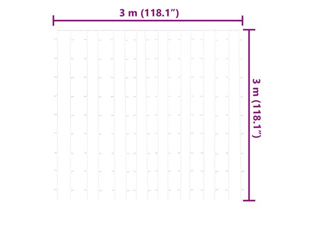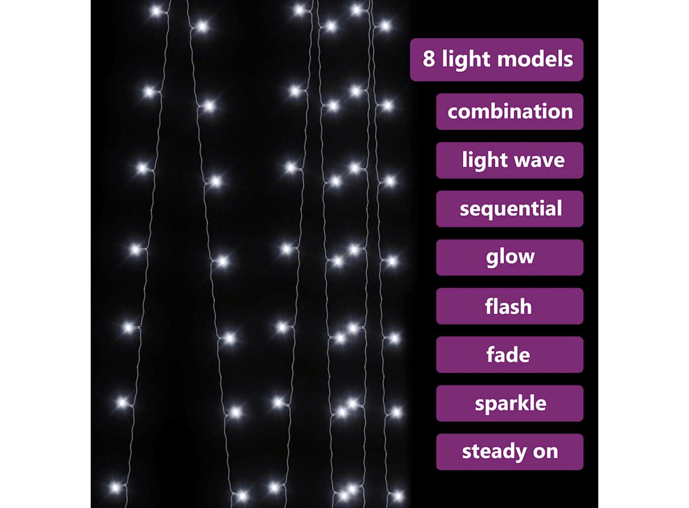 Această instalație de lumini feerice este echipată cu 300 de LED-uri economice energetic, care creează o iluminare magică. Are 8 efecte de iluminare diferite: modul combinat, în unde, modul secvențial, modul strălucitor lent, cu intermitență, modul de estompare lentă, sclipire și iluminare continuă. Este un accesoriu decorativ excelent pentru iluminarea spațiilor de exterior.