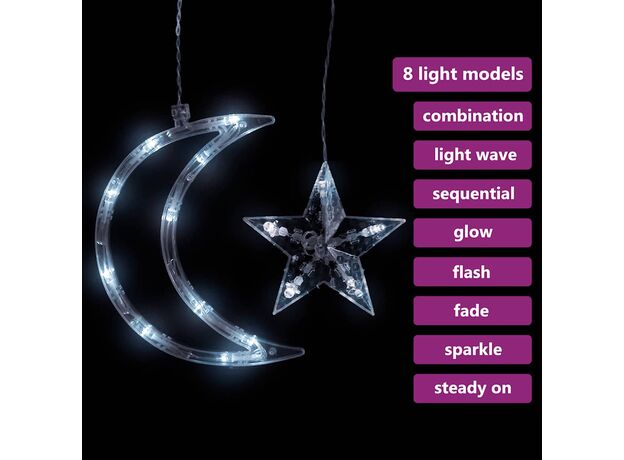 • Dispune de 6 lumini în formă de stea și 6 lumini în formă de lună