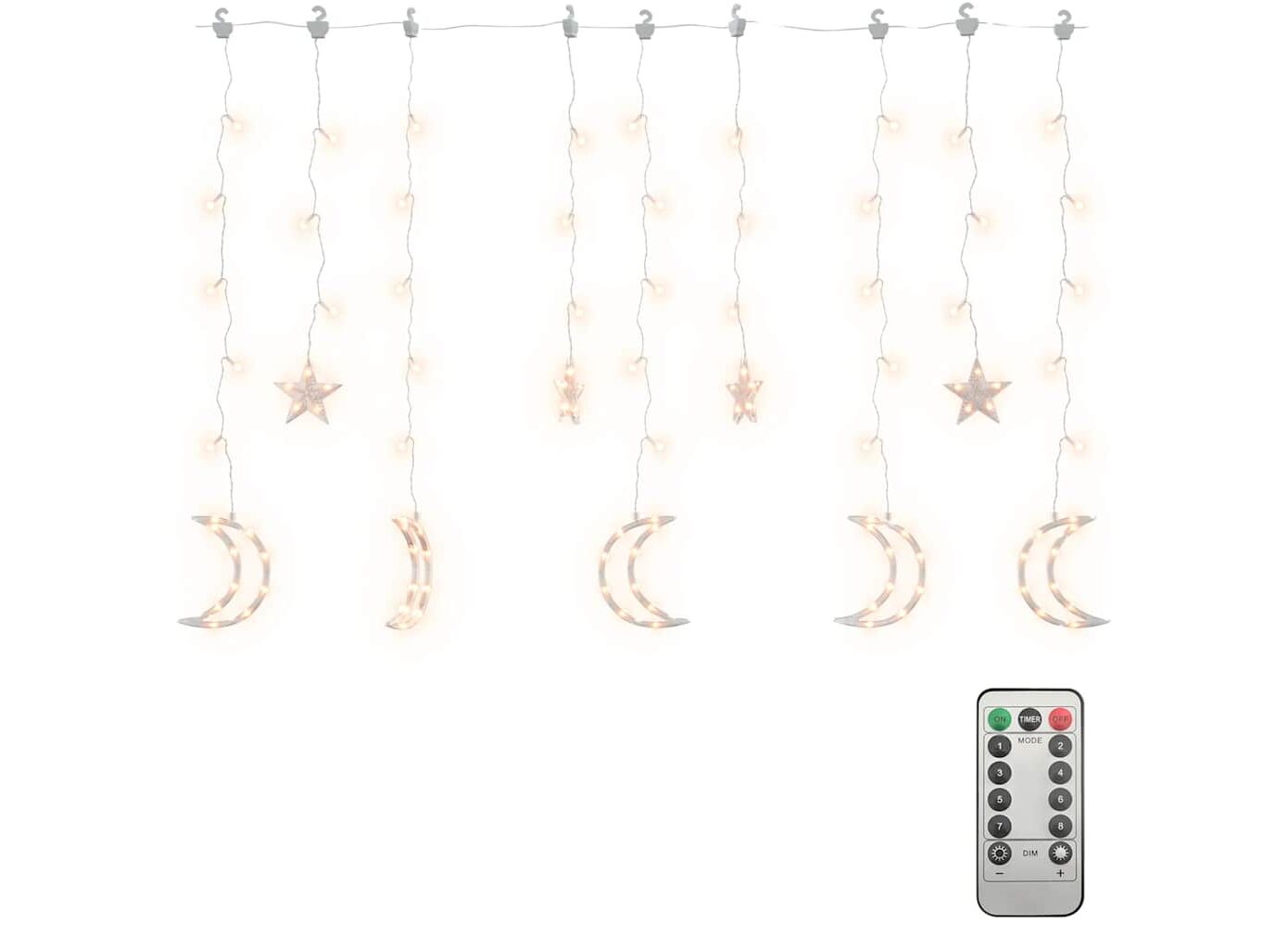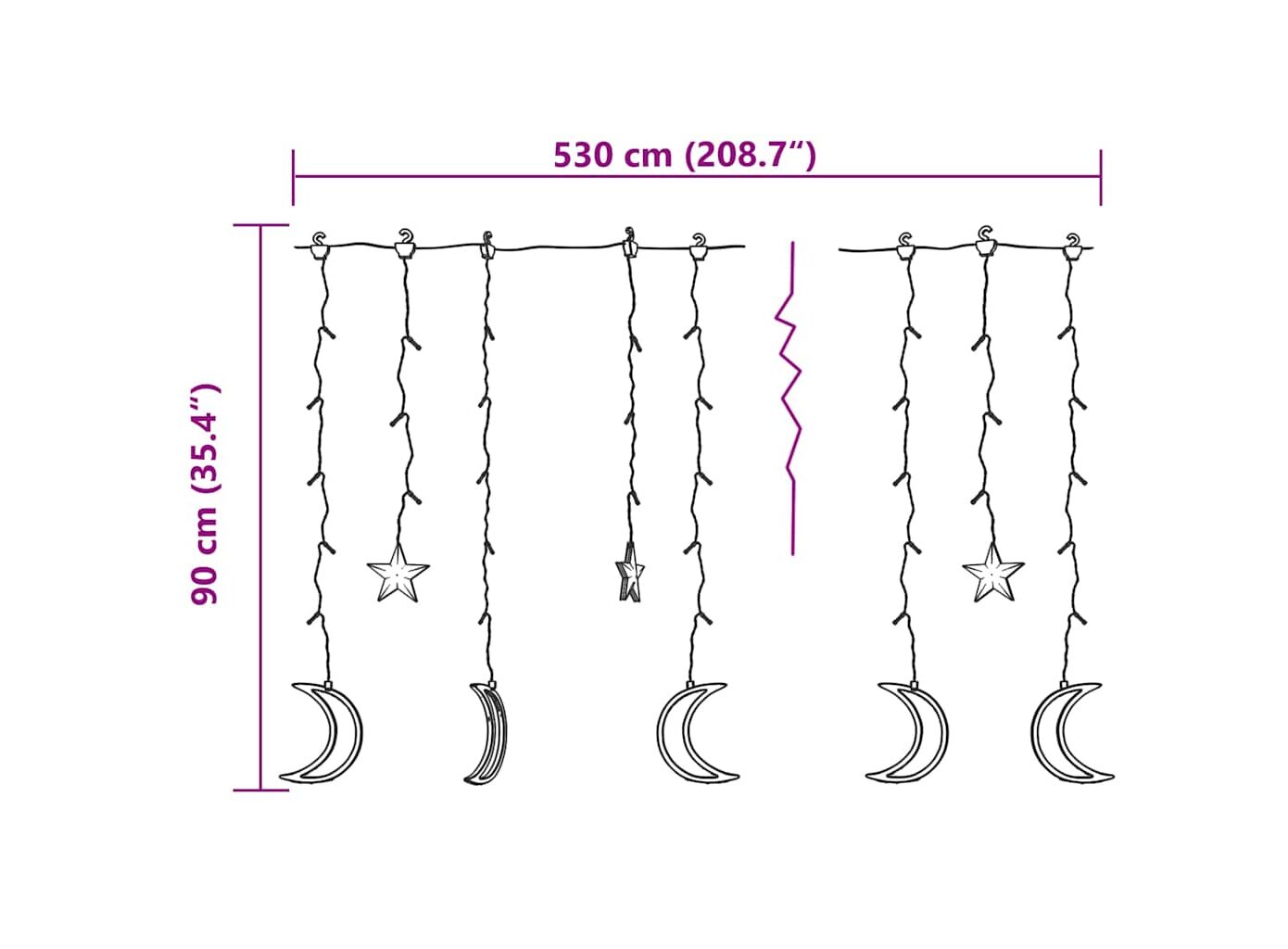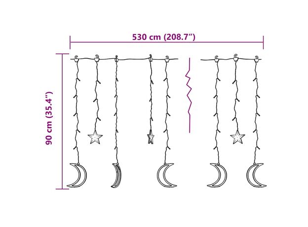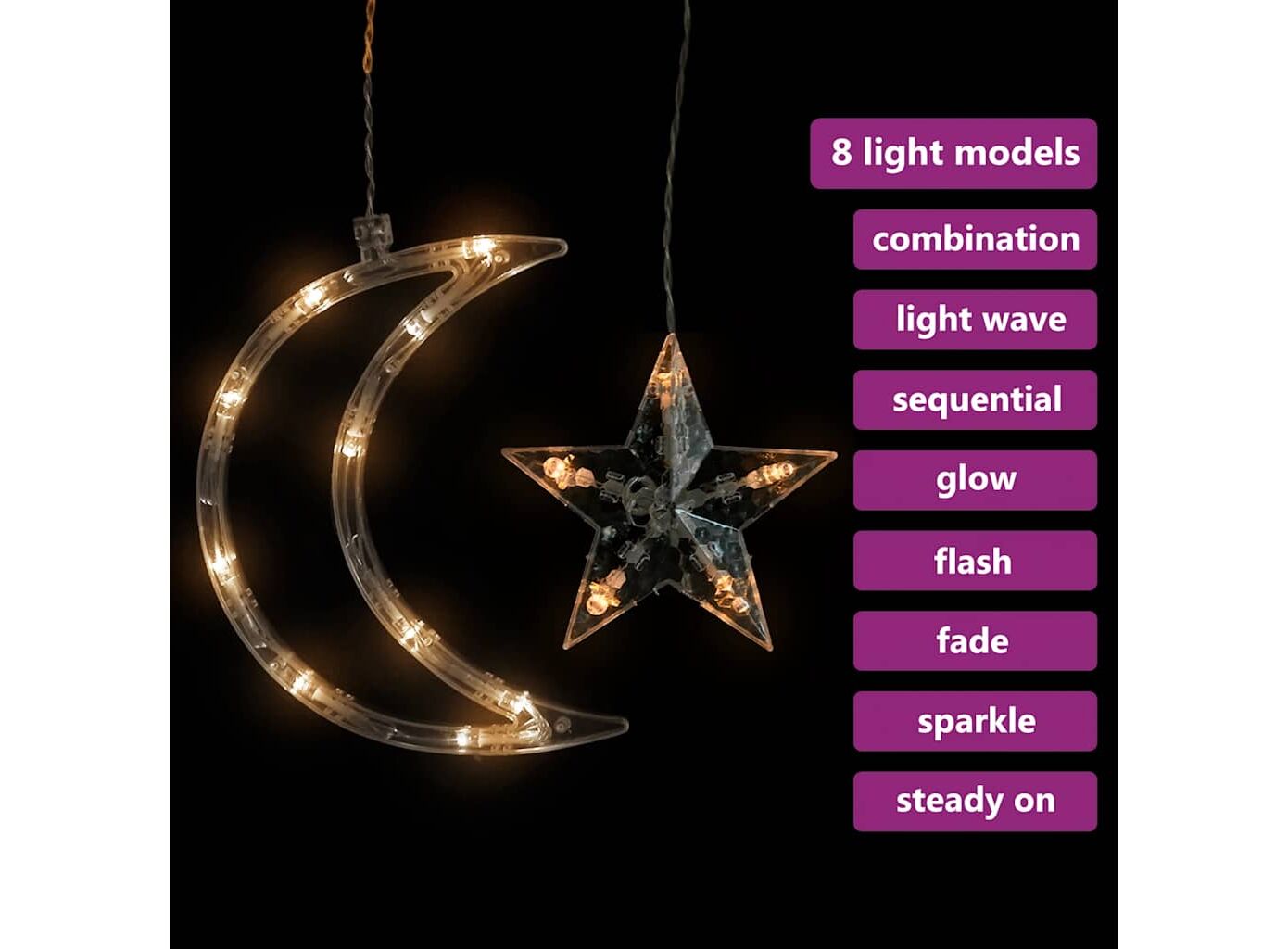 • Dispune de 6 lumini în formă de stea și 6 lumini în formă de lună