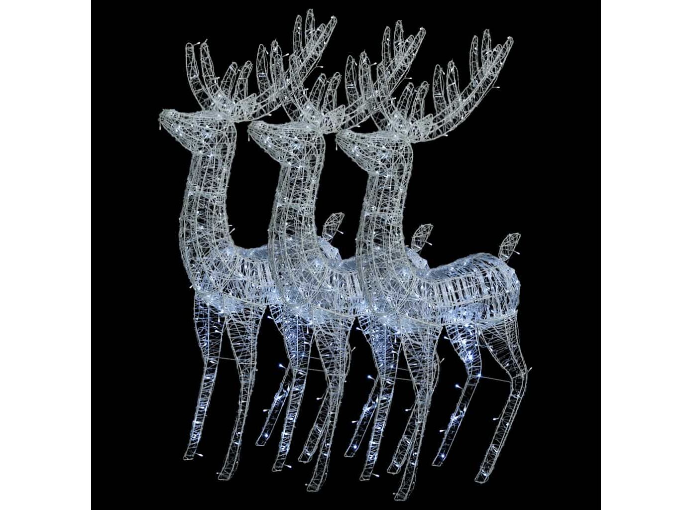 Ren de Crăciun 250 LED-uri, 3 buc., alb rece, 180 cm, acril XXL
