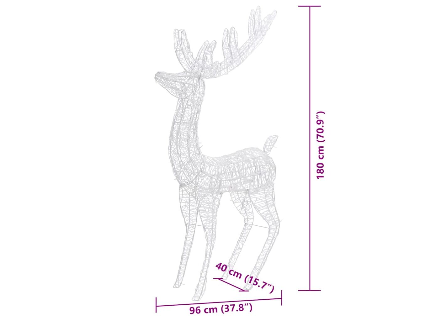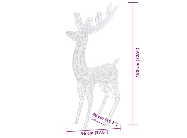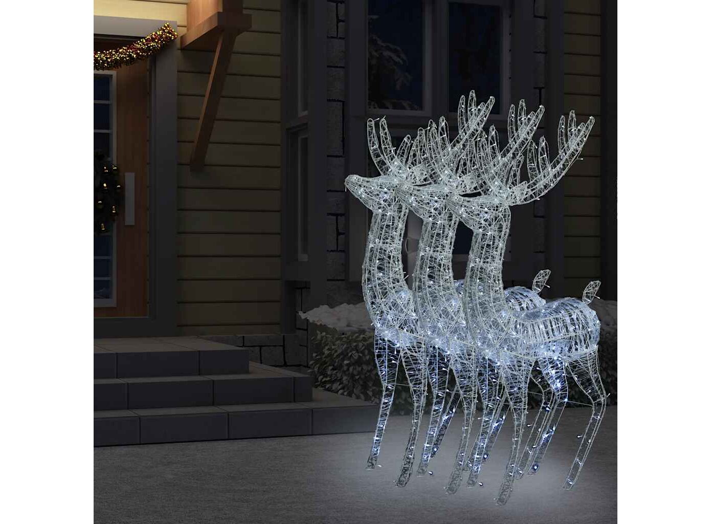• Material rezistent la intemperii: Acești reni luminați sunt fabricați din acril și pot rezista la umiditate și pe vremea ploioasă. De asemenea, pot fi curățați ușor cu o cârpă umedă atunci când este necesar.
