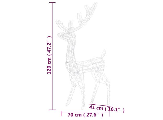 • Material rezistent la intemperii: Acești reni luminați sunt fabricați din acril și pot rezista la umiditate și pe vremea ploioasă. De asemenea, pot fi curățați ușor cu o cârpă umedă atunci când este necesar.