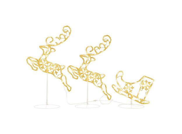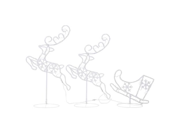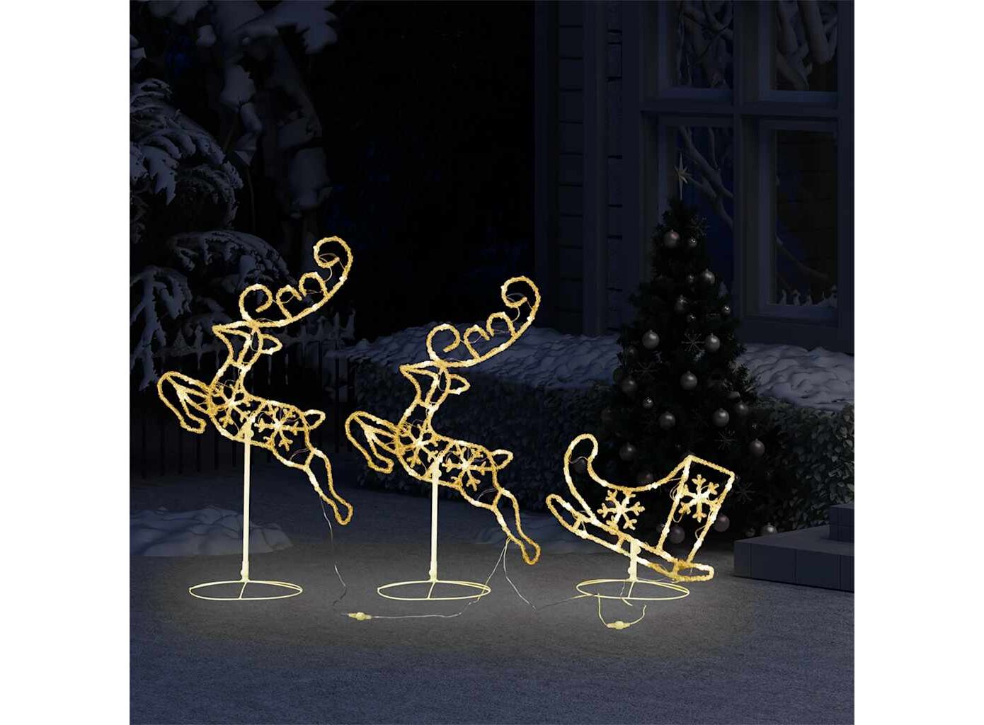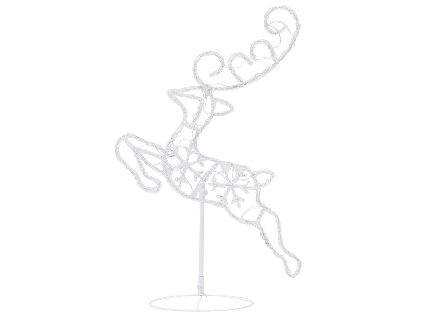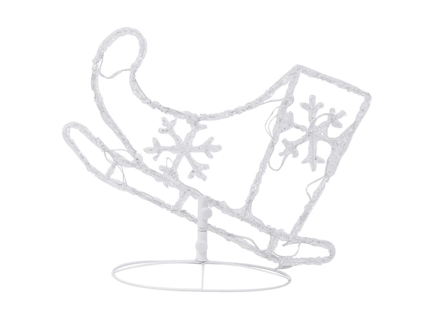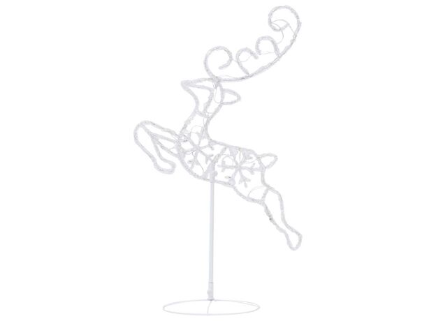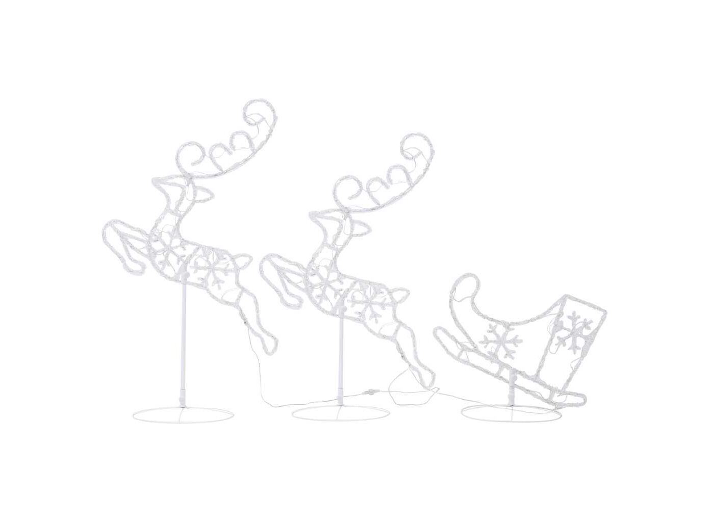 Fabricat din acril, această decorațiune de Crăciun are un aspect rece, ca de gheață. Decorul strălucitor cu reni și sanie dispune de 72 de lumini LED, eficiente din punct de vedere energetic și durabile. Proiectat cu 8 efecte de lumină diferite: o combinație a tuturor efectelor, strălucire lentă, sclipire / intermitent, în valuri, urmărire / apă curgătoare, secvențială, constantă și decolorare lentă, această decorațiune se aprinde frumos și creează o atmosferă magică de sărbători. În plus, suportul inclus adaugă stabilitate.