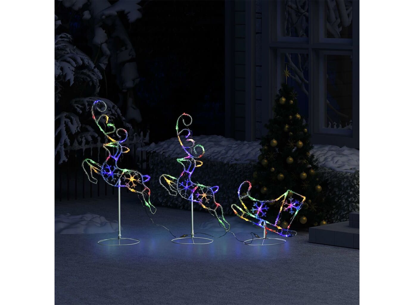 Cantitatea minima pentru "Reni și sanie de Crăciun, colorat, 260x21x87 cm, acril" este 1.