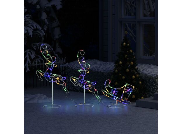 Reni și sanie de Crăciun, colorat, 260x21x87 cm, acril