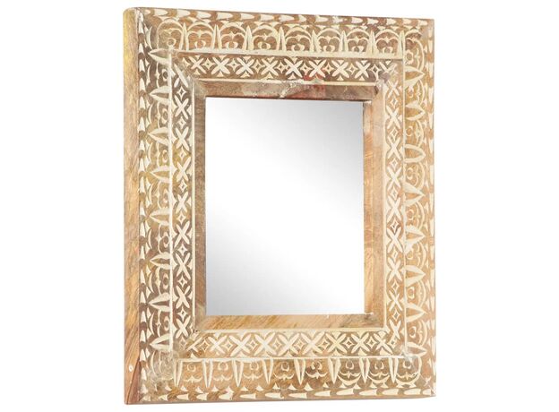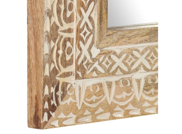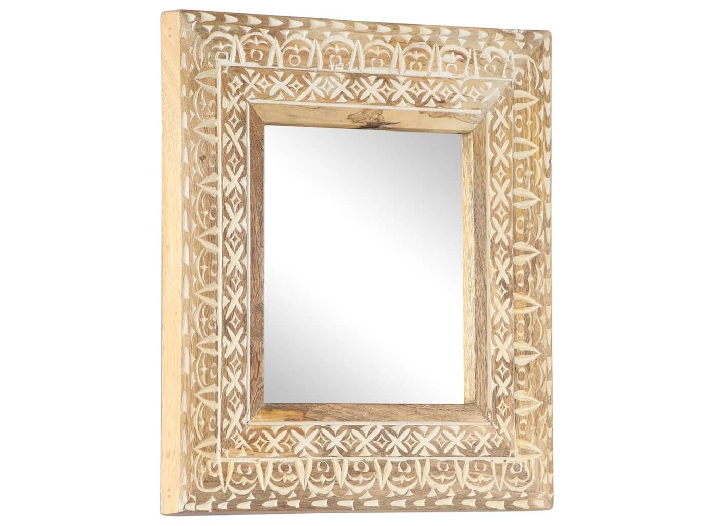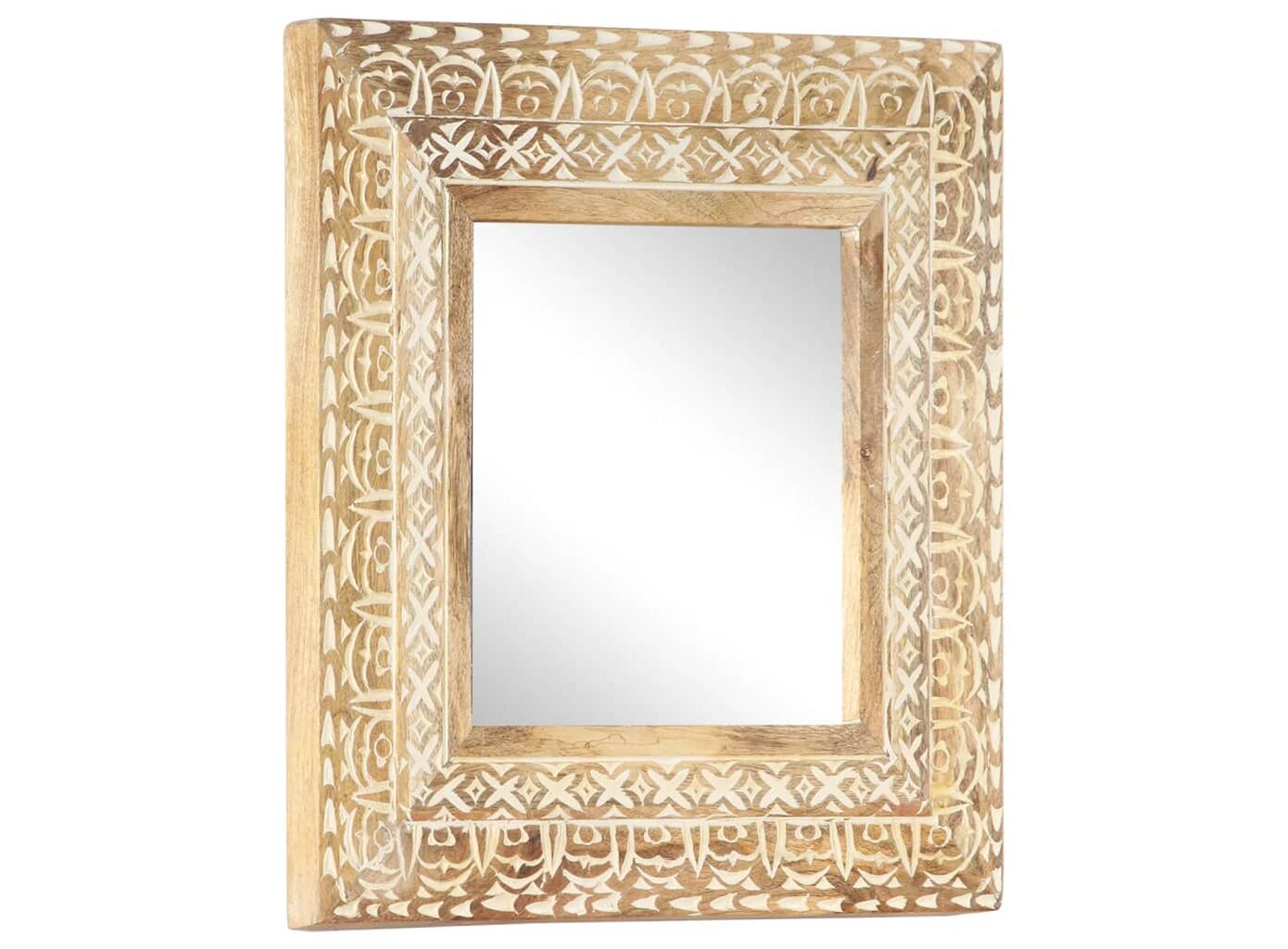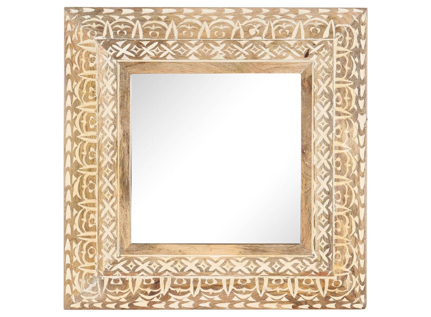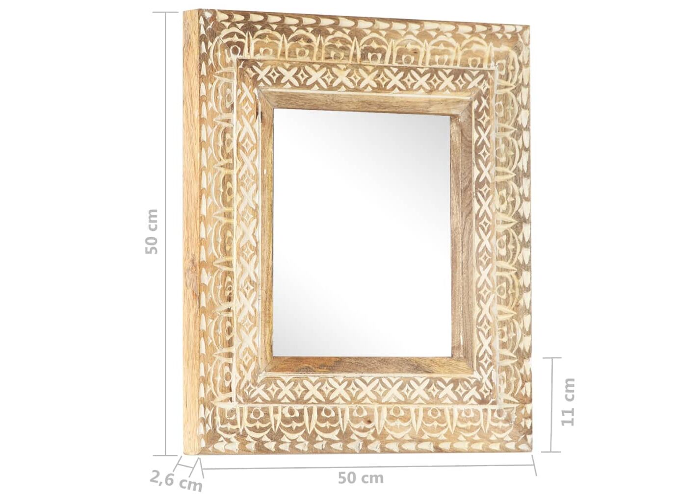 Oglindă sculptată manual, 50x50x2,6 cm, lemn masiv de mango