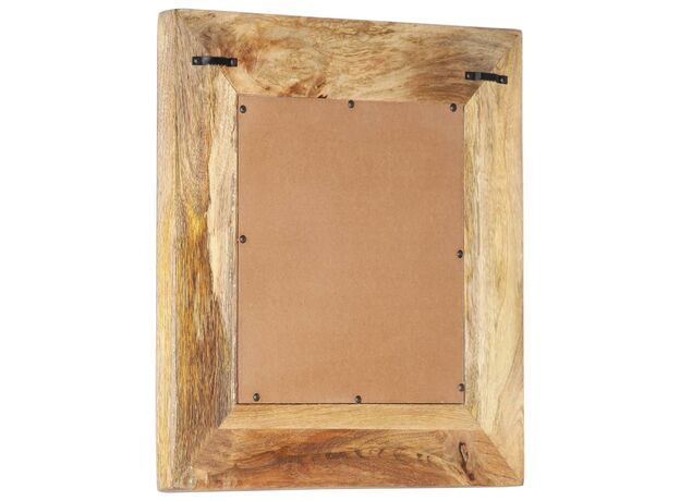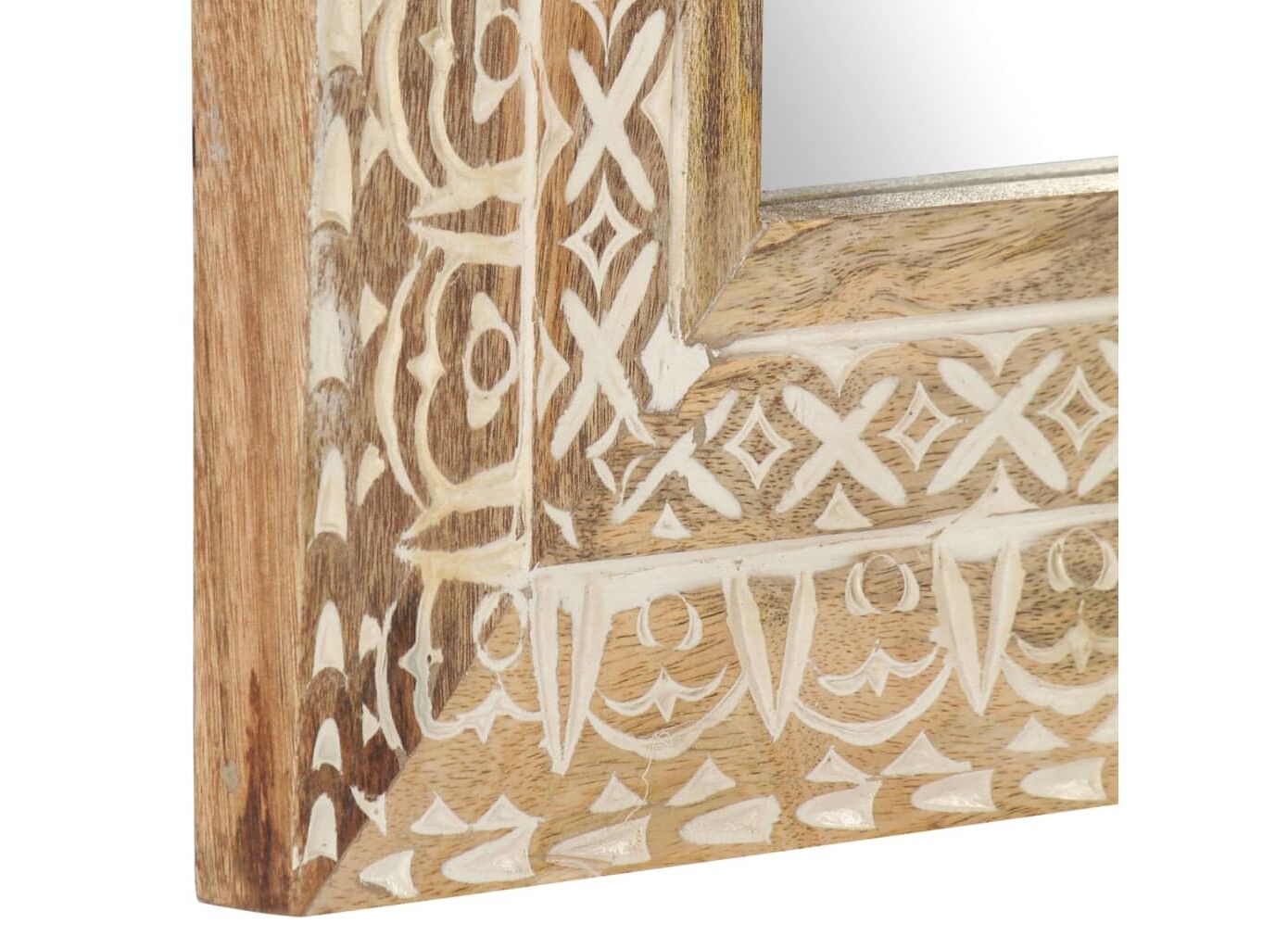 Această oglindă este realizată din lemn masiv de mango, un lemn tropical de esență tare, care are forța de a susține greutatea. De asemenea, acest lemn rezistă la uzura timpului, fiind robust și durabil. Măiestria creației și frumusețea fibrelor de lemn fac fiecare piesă de mobilier unică și ușor diferită de celelalte. În plus, modelul sculptat manual îi completează frumusețea.