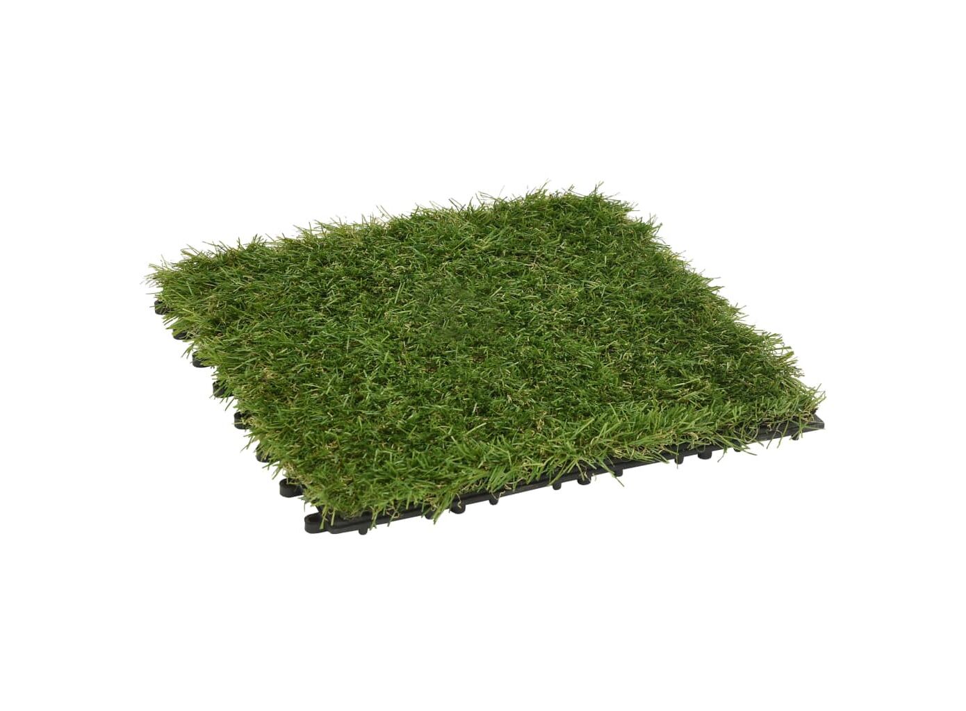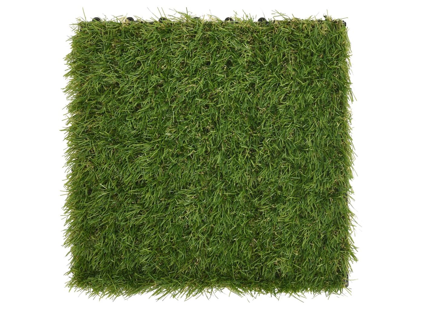 Această iarbă artificială foarte densă arată aproape ca un gazon natural și se va integra perfect în mediul înconjurător. De asemenea, plăcile de gazon sunt foarte ușor de interconectat, datorită unui sistem practic de prindere. De asemenea, este foarte moale și foarte confortabil la atingere. Știfturile de pe partea din spate asigură plăcile de gazon să rămână la locul lor.