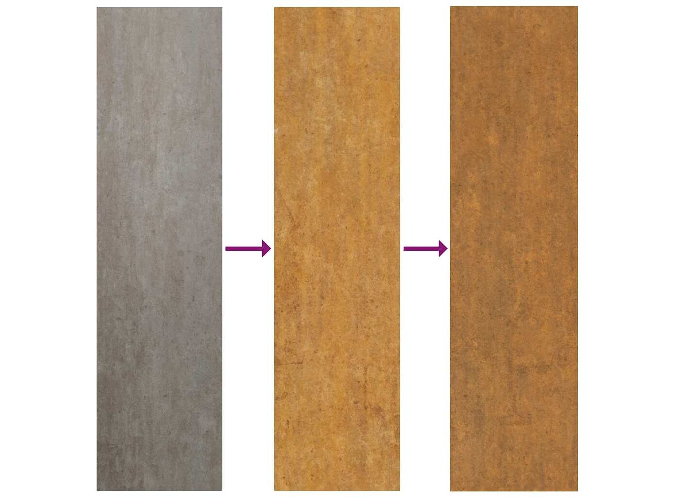 - Acest produs nu este încă ruginit și are o culoare normală de metal când îl primiți, dar rugina se va dezvolta în timp. Puteți accelera procesul de ruginire pulverizându-l cu apă cu săpun sau apă sărată. Pentru a vă păstra hainele fără pete, evitați contactul cu stratul de rugină care se dezvoltă.