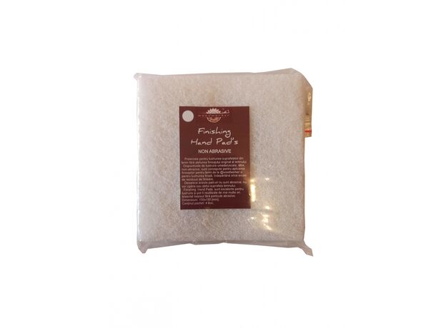 Kitul pentru intretinere mobilierului din lemn masiv, a tocatoarelor, jucariilor din lemn, contine Cutting Board Wax 200 ml si un set de 4 lavete netesute, non abrazive albe, Finishing Hand Pad s Non Abrasive. Cutting Board Wax Acesta este un produs pentru tratarea si intretinerea curenta a produselor din lemn care intra in contact cu organismul uman, si pot patrunde in sistemul digestiv prin absorbtie sau inghitire (cu toate astea nu se inghit!), produs fabricat din ceara naturala de albine, ceara de carnauba, ulei de cocos, ulei mineral de inalta puritate de uz farmaceutic si vitamina E. Cutting Board Wax este o pasta semi-solida gata de utilizare. Daca la suprafata pare mai tare, folositi o spatula din lemn. Nu are miros, nu da miros, si nu va contamina mancarea cu gusturi sau mirosuri ciudate. Suprafetele trebuie sa fie bine slefuite, uscate si curatate de praf si impuritati. Aplicarea produsului se va face in minim 2 straturi, care se aplica dupa spalarea si uscarea obiectului din lemn in aer. Aplicarea Cutting Board Wax se face cu ajutorul pad-ului aflat in kitul de fata, prin miscari circulare, avand grija sa aplicati un strat uniform; ceara nu trebuie aplicata in strat gros. Dupa un timp de circa 30 minute de la aplicarea primului strat si mai exact dupa ce acesta a intrat in lemn, stergem surplusul si aplicam cel de-al doilea strat tot cu ajutorul padului. Asteptati uscarea si al celui de-al doilea strat inainte de a realiza lustruirea finala cu acelasi pad - dar cu partea uscata. Acest produs se poate utiliza pentru tratamentul prin ungere a diferitelor elemente de lemn, pentru mobila, produse din lemn care pot intra in contact cu mancarea (tocatoare, boluri, salatiere, fructiere, chees-board,etc), pentru tratarea jucariilor folosite de copii, placari din lemn. Nu contine solventi, silicon, arome, coloranti sau alte substante; cu toate astea este interzisa inghitirea produsului. Laveta netesuta, non abraziva alba, Finishing Hand Pad s Non Abrasive, finisare, aplicare umed uscat finisaj mobilier lemn Proiectate pentru lustruirea suprafetelor din lemn fara slefuirea finisajului original al lemnului. Dispozitivele de lustruire umede uscate, albe, non-abrazive, sunt concepute pentru aplicarea finisajelor pentru lemn de la woodworker si pentru lustruirea finala, indepartand orice exces de reziduuri de finisare. Deoarece aceste pad-uri nu sunt abrazive, nu vor zgaria sau slefui suprafata lemnului. Finishing Hand Pads sunt excelente pentru lustruire si pot fi reutilizate de mai multe ori inainte de a fi aruncate. Material netesut fara particule abrazive.