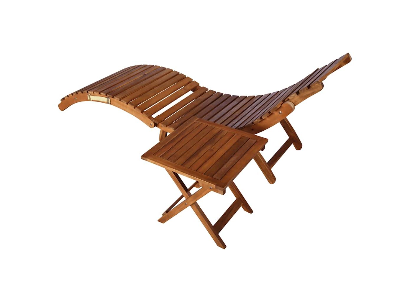 Șezlongul de exterior și masa sunt fabricate din lemn masiv de acacia, fiind robuste și stabile. Patul șezlong are o formă curbată ergonomic, permițându-vă să vă întindeți și să vă relaxați complet. Acest pat de plajă și masa pot fi pliate, atunci când nu sunt utilizate. Perna cu suport pentru cap va adăuga un plus de confort, atunci când vă relaxați. Fiecare pernă are șase seturi de șnururi, astfel încât să o puteți fixa bine pe șezlong.