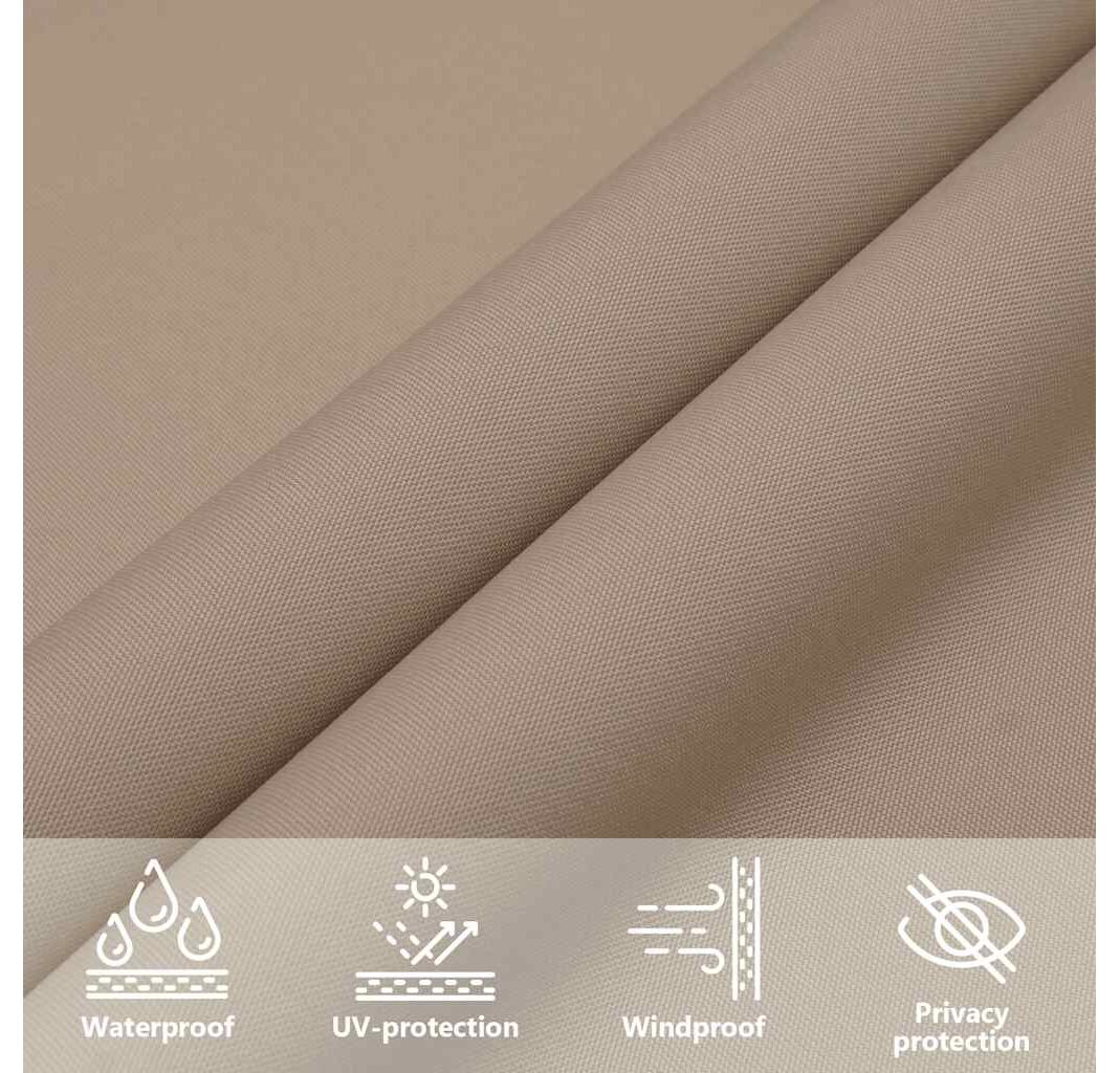 Realizat din țesătură oxford cu înveliș PU, parasolarul vă va proteja de lumina directă a soarelui și de ploaie. Țesătura este special tratată, astfel încât să ofere rezistență la mucegai și la raze UV.