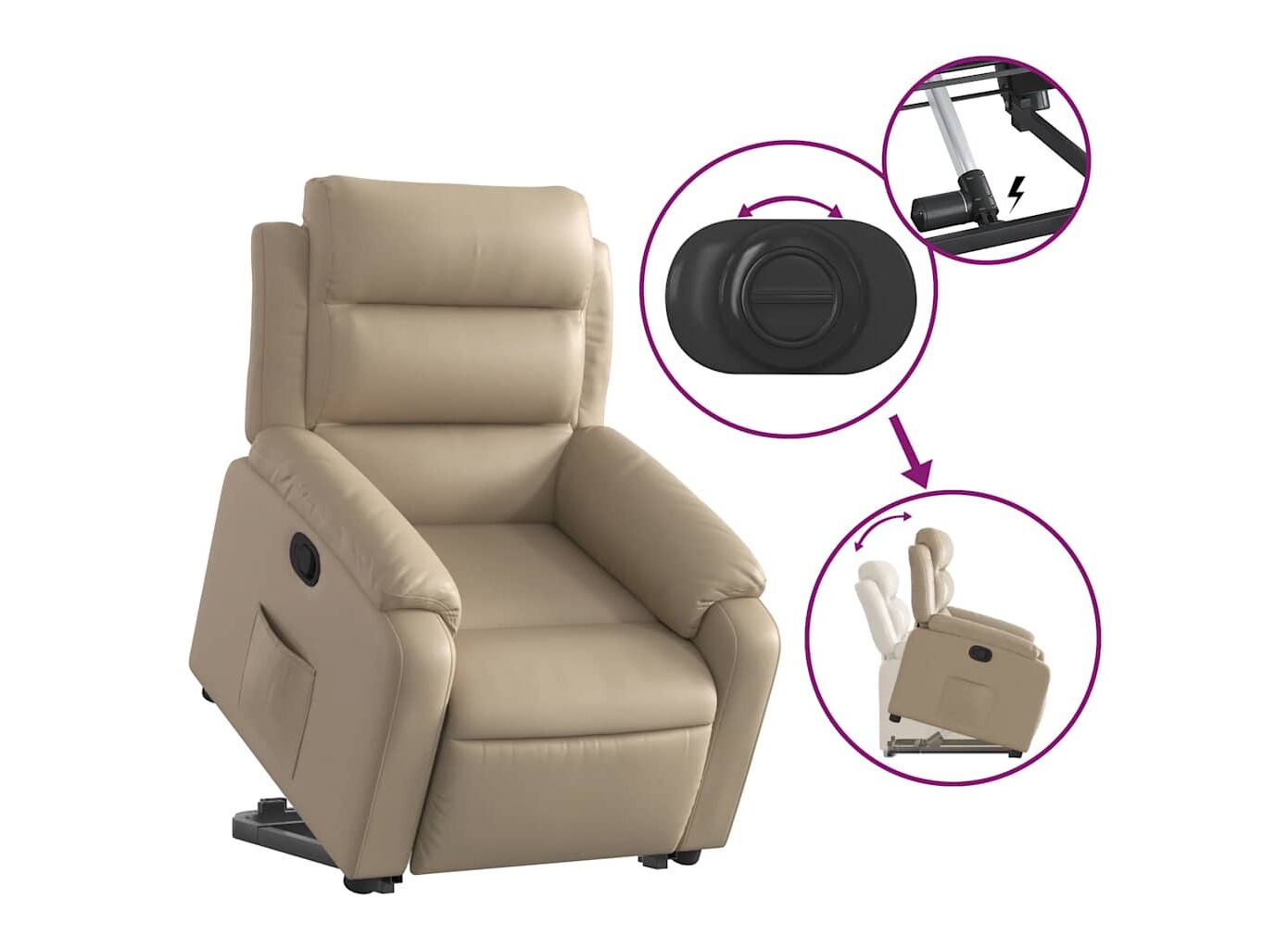 Fotoliu rabatabil cu ridicare, cappuccino, piele ecologică
