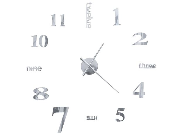 Ceas de perete 3D, argintiu, 100 cm, XXL, design modern