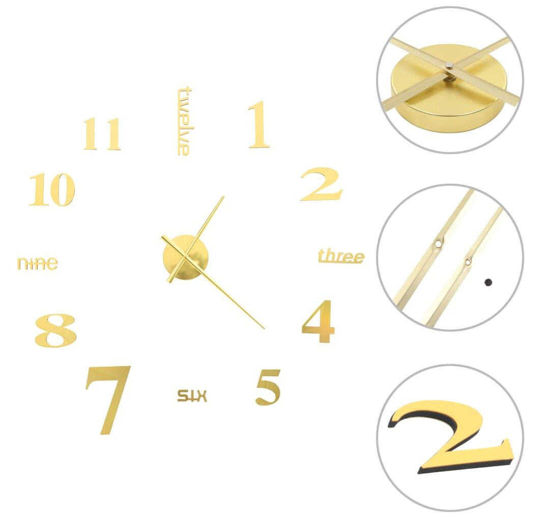 Cantitatea minima pentru "Ceas de perete 3D, auriu, 100 cm, XXL, design modern" este 1.