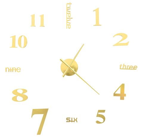 Ceas de perete 3D, auriu, 100 cm, XXL, design modern
