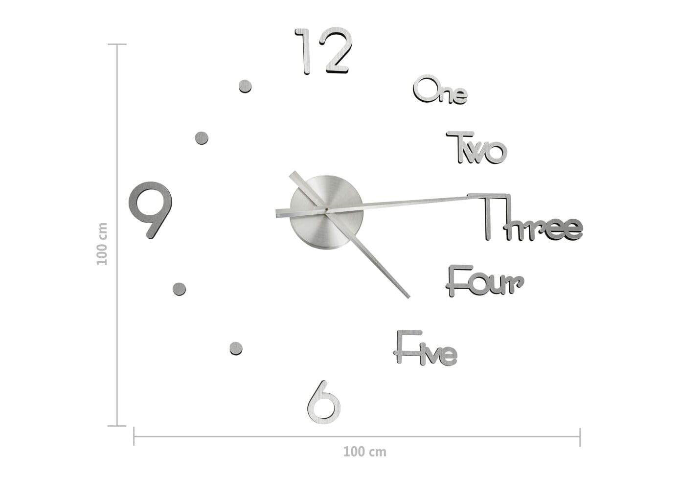 Cantitatea minima pentru "Ceas de perete 3D design modern, argintiu, 100 cm, XXL" este 1.