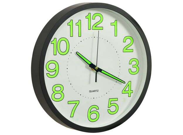 Cantitatea minima pentru "Ceas de perete fosforescent, negru, 30 cm" este 1.