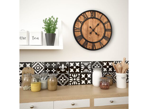Ceasul are un cadru robust din metal și este foarte durabil. Echipat cu cuarț de înaltă calitate, ceasul este extrem de precis la indicarea orei. Cadranul din lemn, împreună cu cifrele romane, oferă ceasului un farmec vintage. Poate fi ușor atârnat pe perete. Ceasul va oferi un aspect îngrijit și ordonat interiorului dvs.