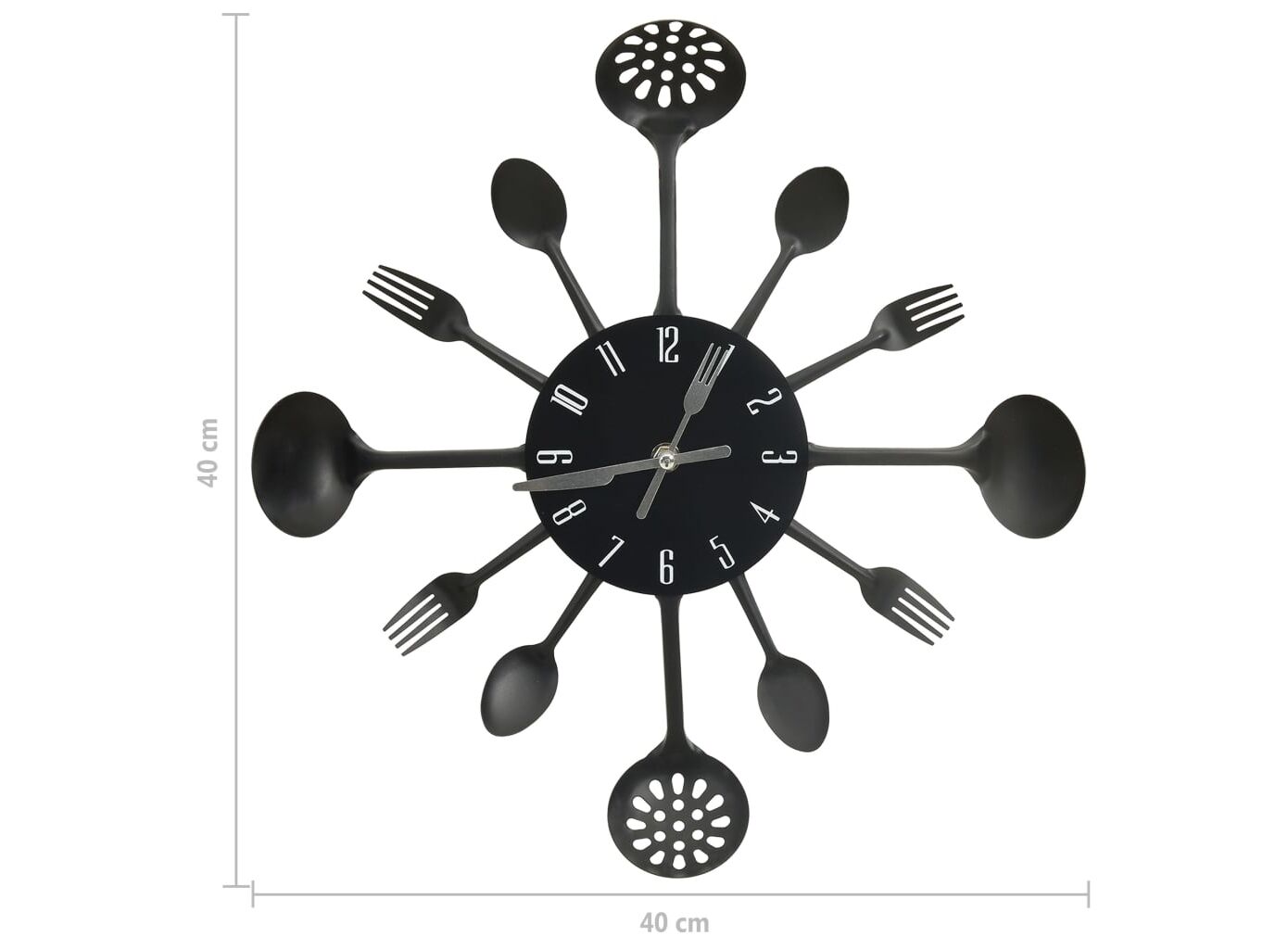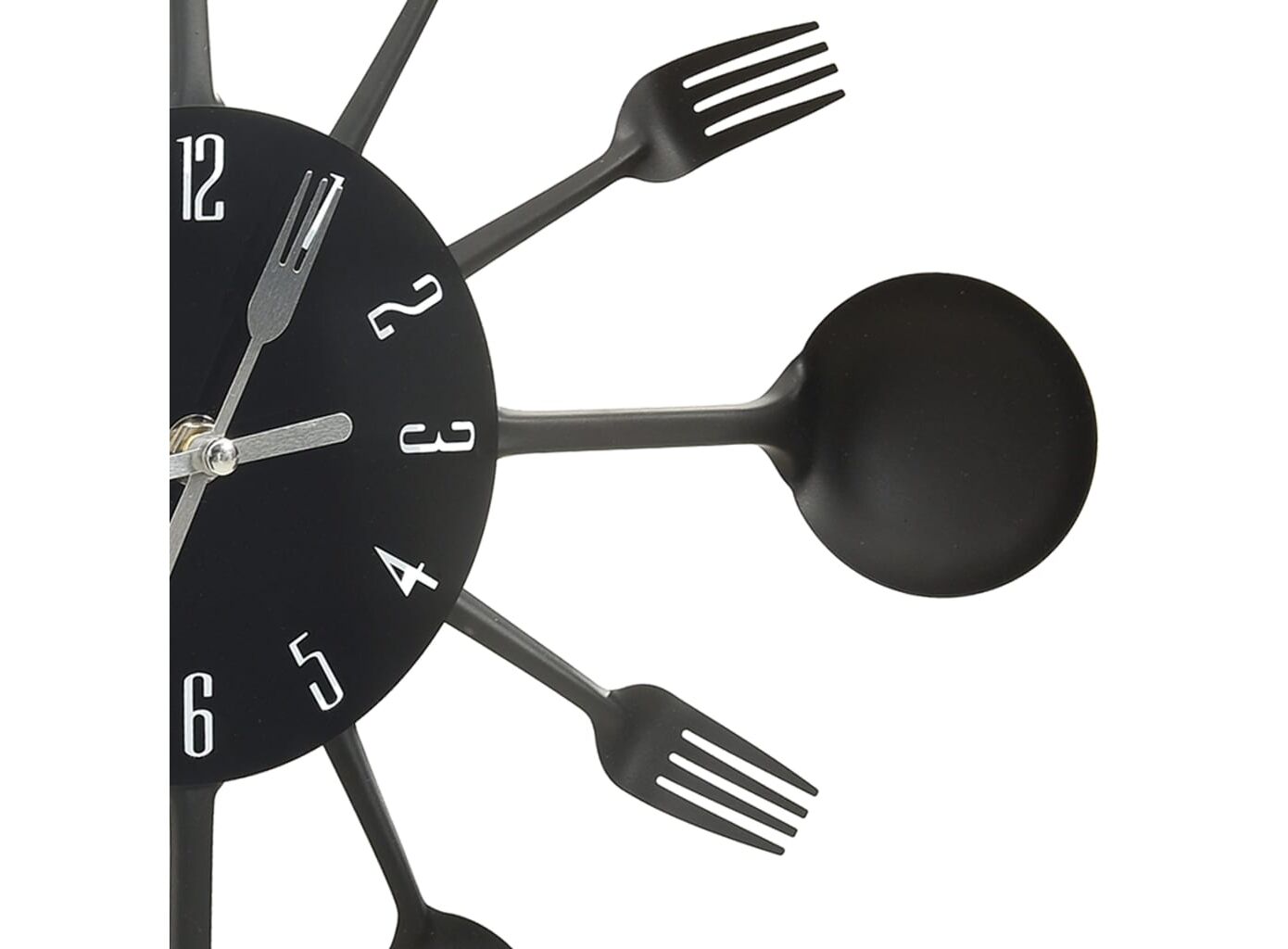 Acest ceas de perete este decorat cu furculițe și linguri, făcându-l o piesă atractivă pentru interiorul dumneavoastră. Cadranul de ceas este situat în centrul cercului cu numere clare, astfel încât să puteți spune ora rapid și ușor.