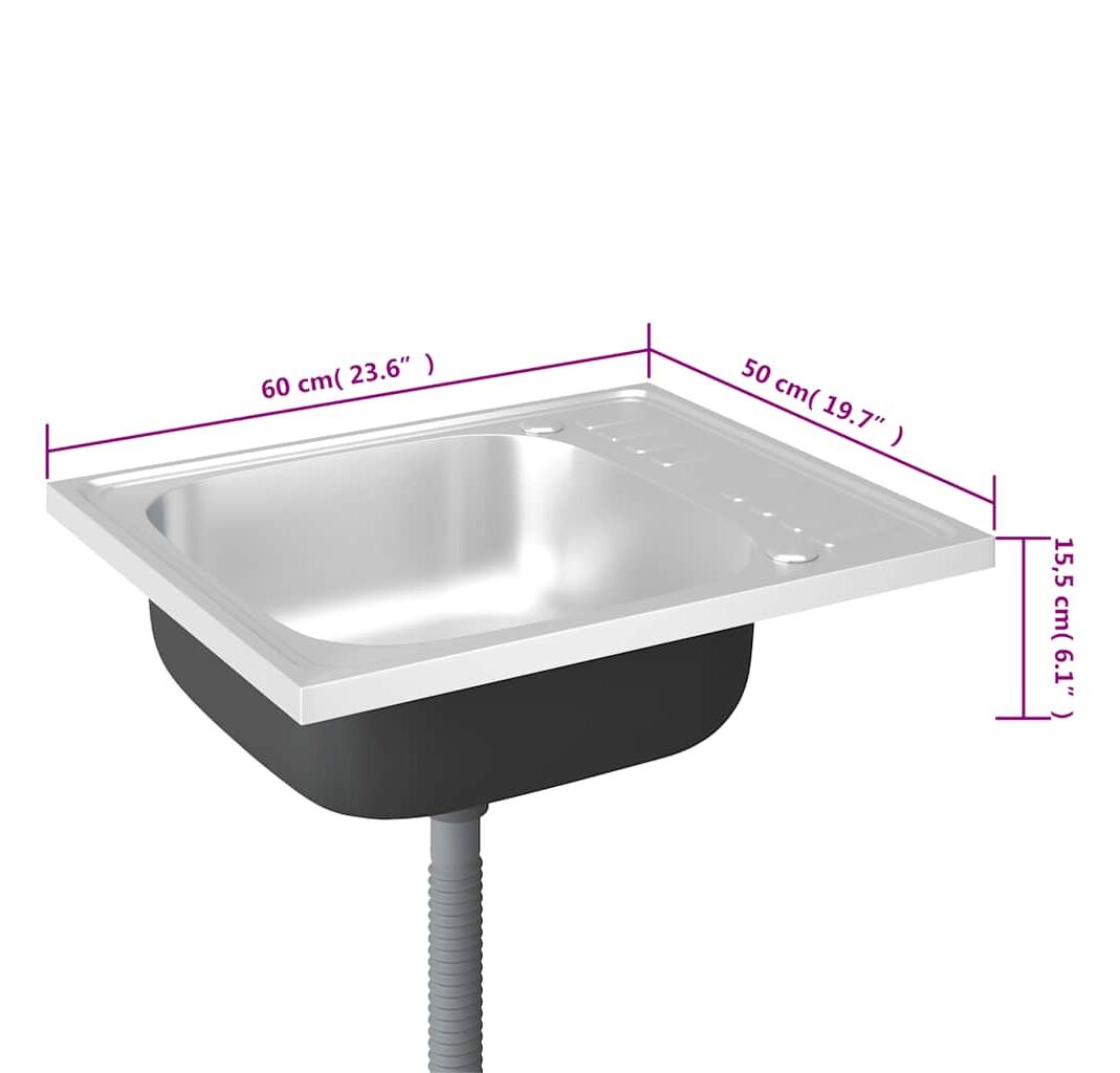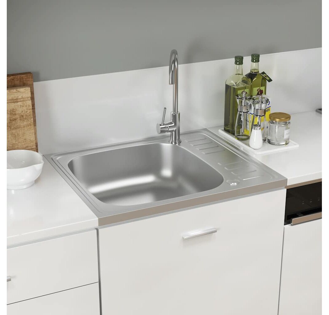 Chiuvetă bucătărie cu scurgător, argintiu 600x500x155 mm oțel