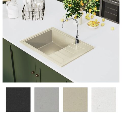 Această chiuvetă de bucătărie din granit va fi un element de decor mereu la modă în bucătăria dvs. Are o singură cuvă foarte adâncă și un design elegant.