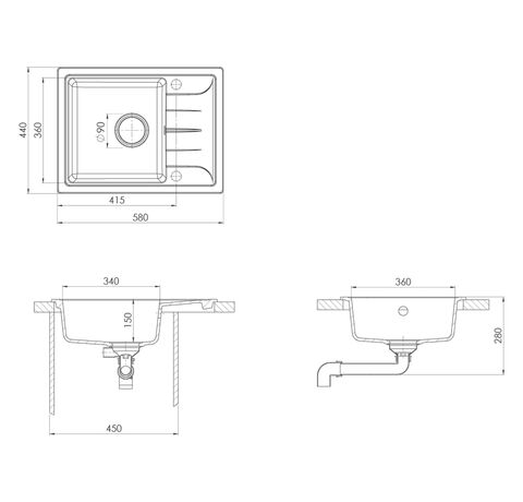 - Dimensiuni chiuvetă: 340 x 360 x 150 mm (l x ad. x î)