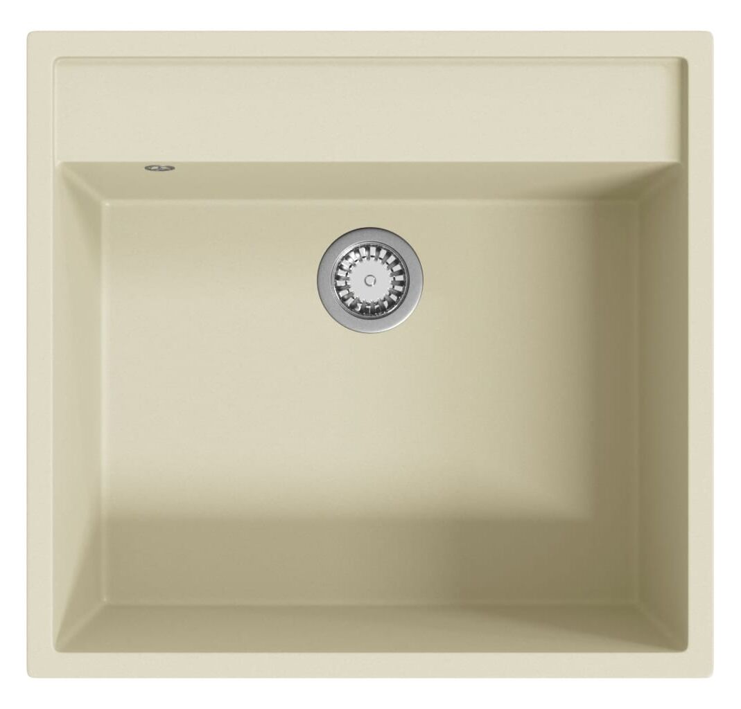 Chiuvetă de bucătărie cu orificiu de preaplin, bej, granit