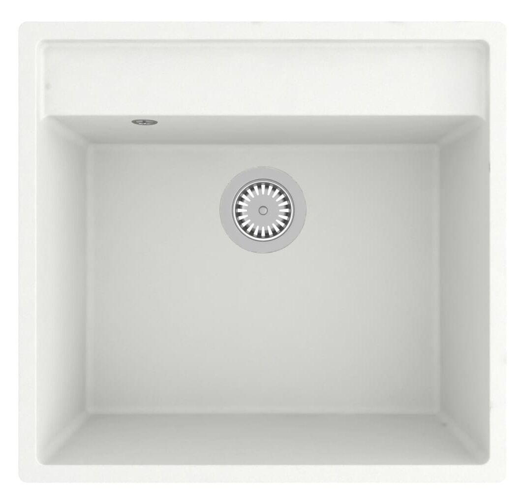 Chiuvetă de bucătărie cu orificiu de preaplin, alb, granit