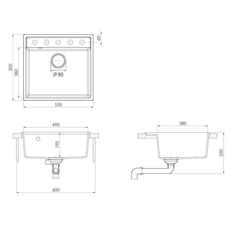 • Dimensiuni chiuvetă: 490 x 380 x 190 mm (l x ad. x î)