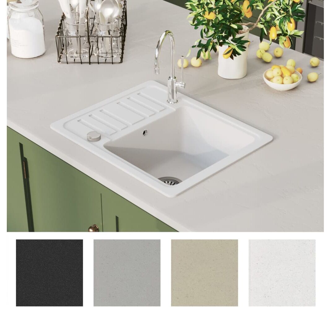 Granitul de înaltă calitate face chiuveta extrem de rezistentă la căldură, zgârieturi și la impact, precum și ușor de curățat. În plus, este complet reversibilă, ceea ce înseamnă că această chiuvetă poate fi montată atât pe partea dreaptă, cât și pe cea stângă. O sită pentru scurgere este inclusă pentru îndepărtarea ușoară a resturilor.