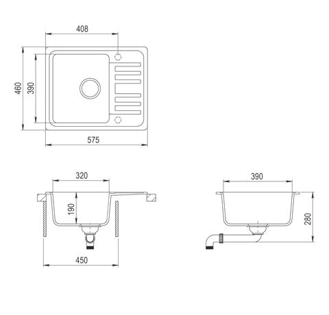 - Dimensiuni totale: 575 x 460 x 280 mm (L x l x ad.)