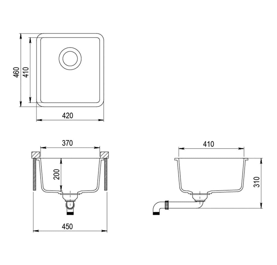 • Dimensiuni cuvă: 370 x 410 x 200 mm (L x l x ad.)