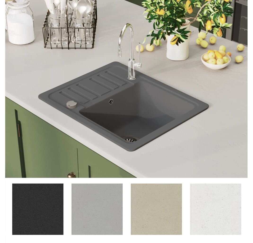 Chiuvetă de bucătărie din granit cu o cuvă, gri