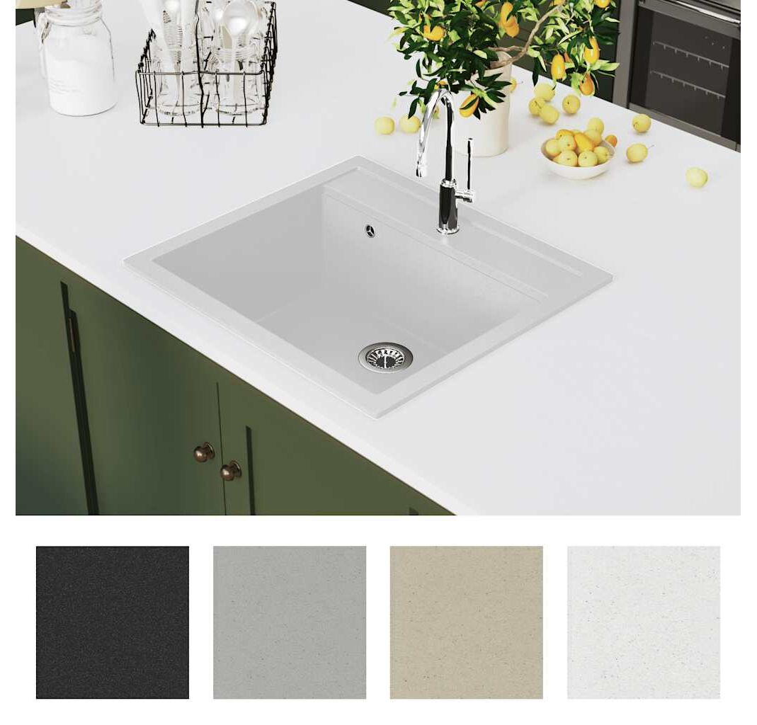 Chiuvetă de bucătărie din granit, alb, bazin unic
