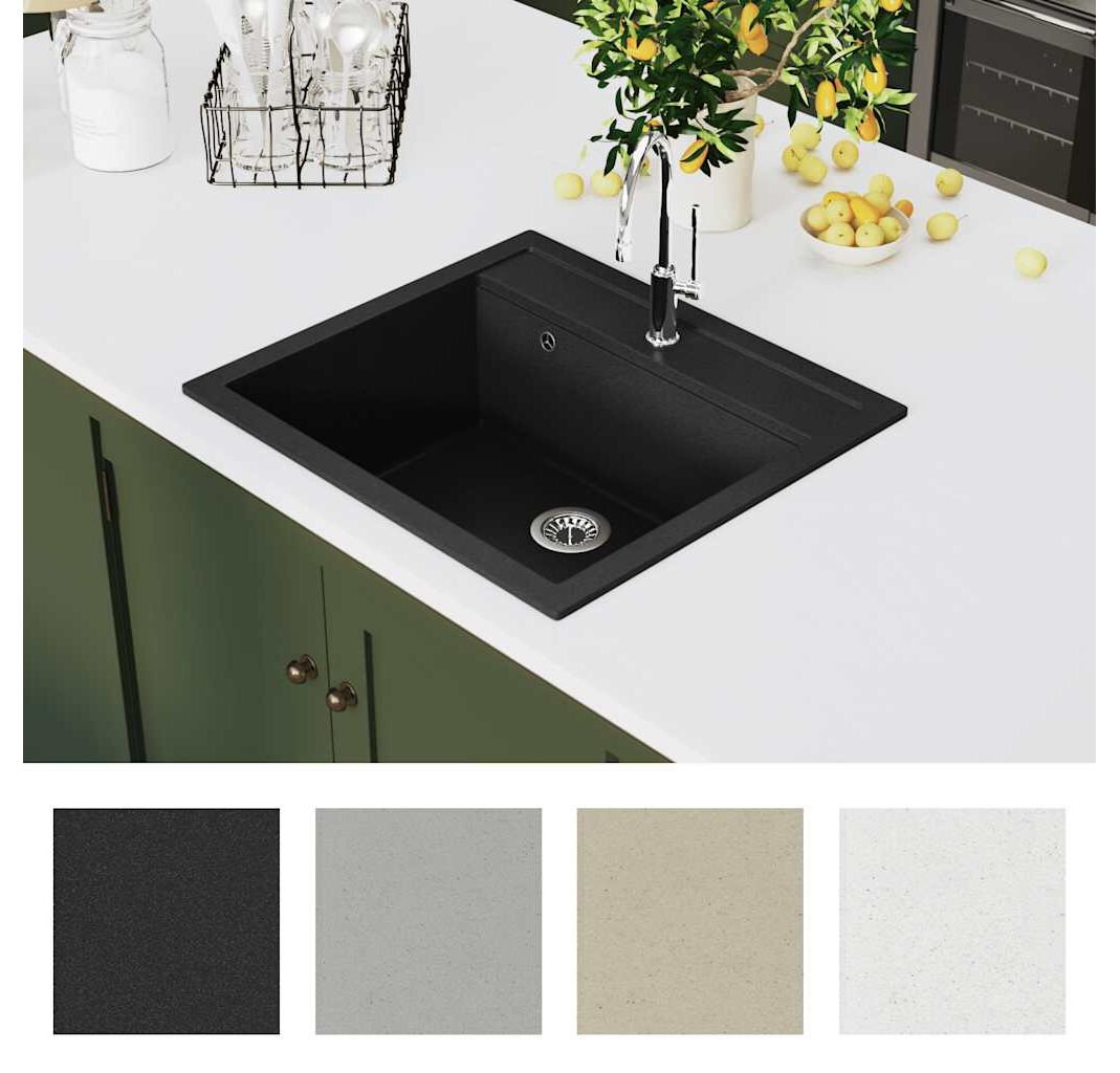 Chiuvetă de bucătărie din granit cu o cuvă, negru
