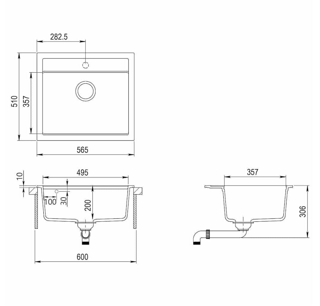 • Dimensiuni totale: 565 x 510 x 306 mm (L x l x ad.)