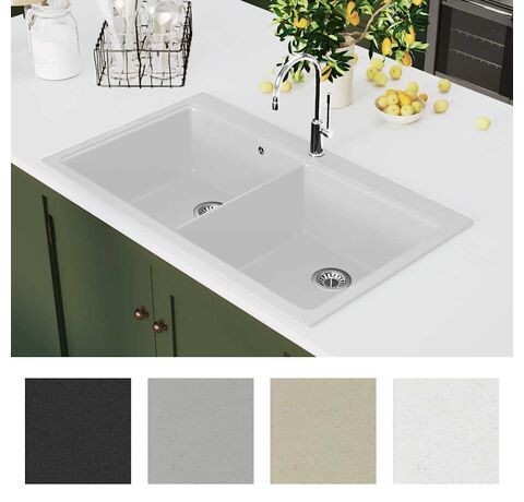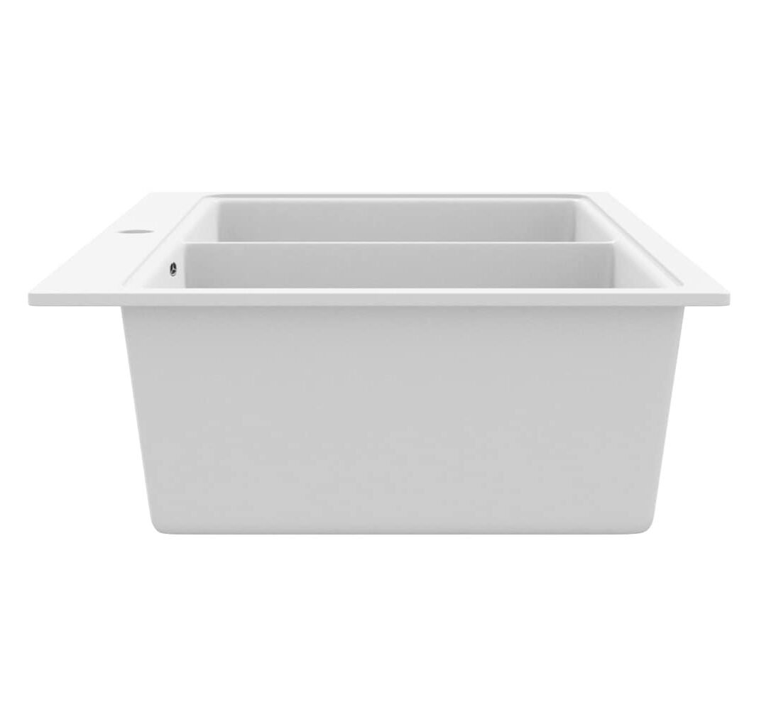 Chiuvetă de bucătărie din granit încastrată, cu două cuve, alb crem