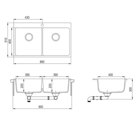• Dimensiuni bazin: 390 x 400 x 200 mm (L x l x Ad.)