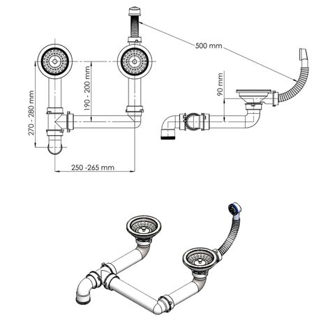 Este o chiuvetă ce economiseşte spaţiu. Cele două cuve foarte adânci oferă spațiu amplu pentru vase mari și tigăi, astfel încât aveți mereu spațiu liber la dispoziție. Livrarea include și o sită pentru îndepărtarea cu uşurinţă a deşeurilor.
